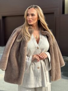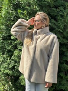 Мягкая, пушистая фактура меха создаёт ощущение уюта и тепла, при этом изделие выглядит по-королевски изысканно. Объёмные рукава и плавные линии кроя делают модель универсальной: она гармонично впишется как в повседневный, так и в более торжественный гардероб.