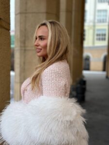 Элегантный твидовый жакет приталенного кроя — воплощение классического стиля с современными акцентами. Благородная фактура твида, переливающаяся в игре света, придаёт образу изысканность и шарм, а лаконичный силуэт подчёркивает женственность линий. Двубортная конструкция с выразительными лацканами создаёт эффектный акцент, делая жакет центральным элементом любого ансамбля.